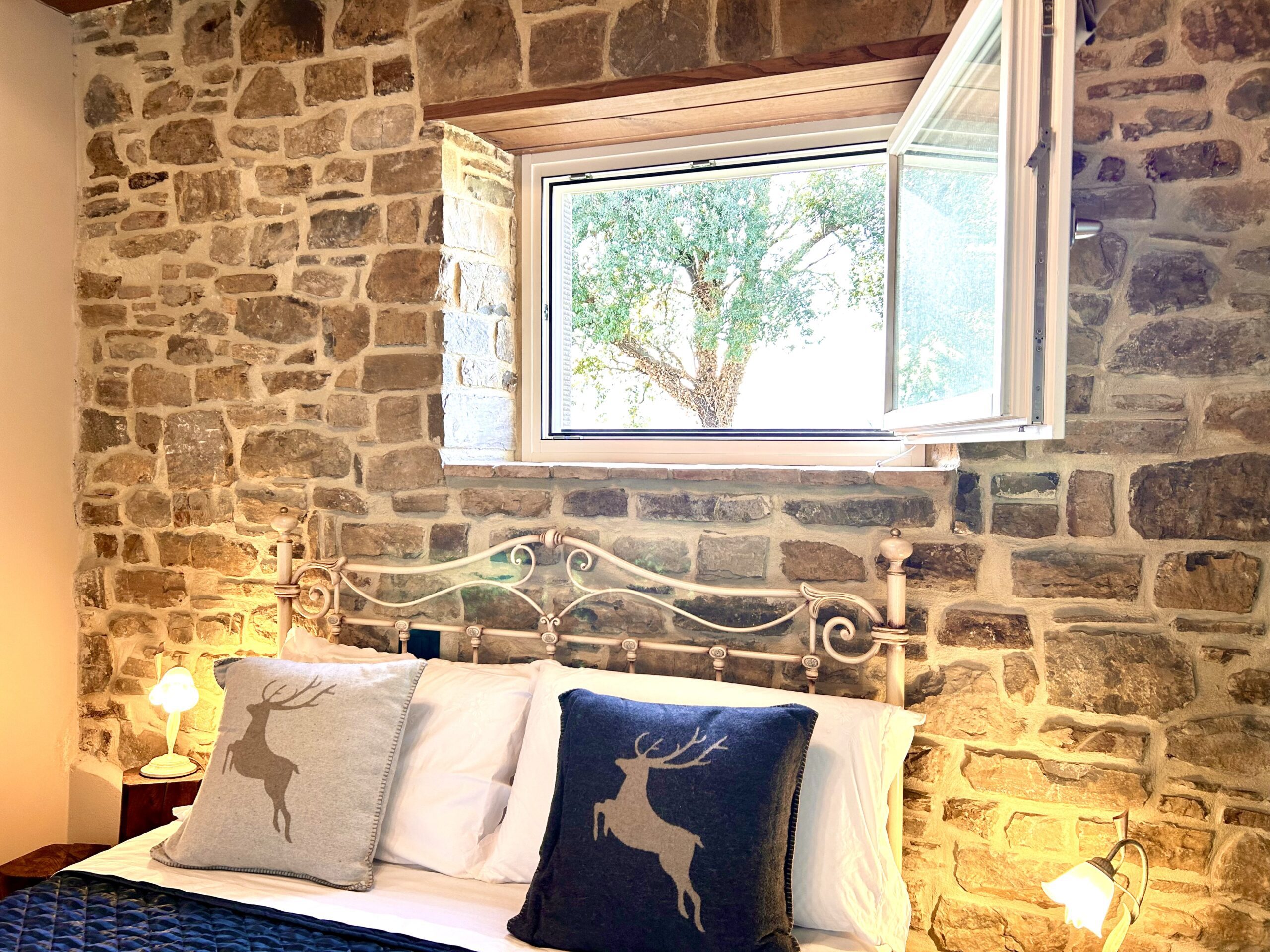 Rustic and cozy warmth. Our room will envelop you in an intimate and cozy atmosphere. The exposed stone walls and ceilings with solid wood beams create a rustic and refined ambiance. Its window a picture set in the wall.